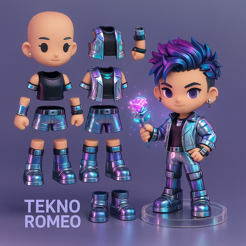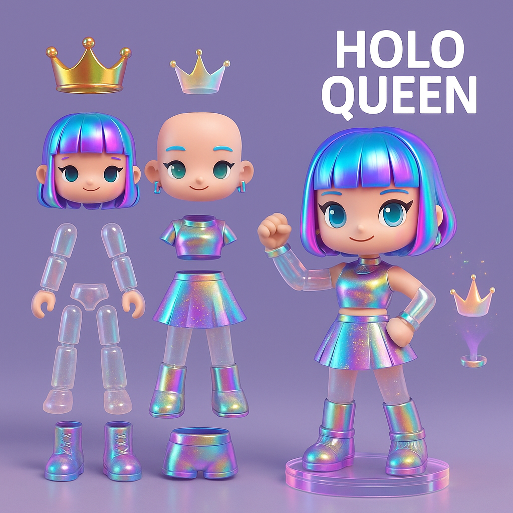 Clean glossy sculpt zoals jouw voorbeeld → herkenbaar, hype, verzamelbaar